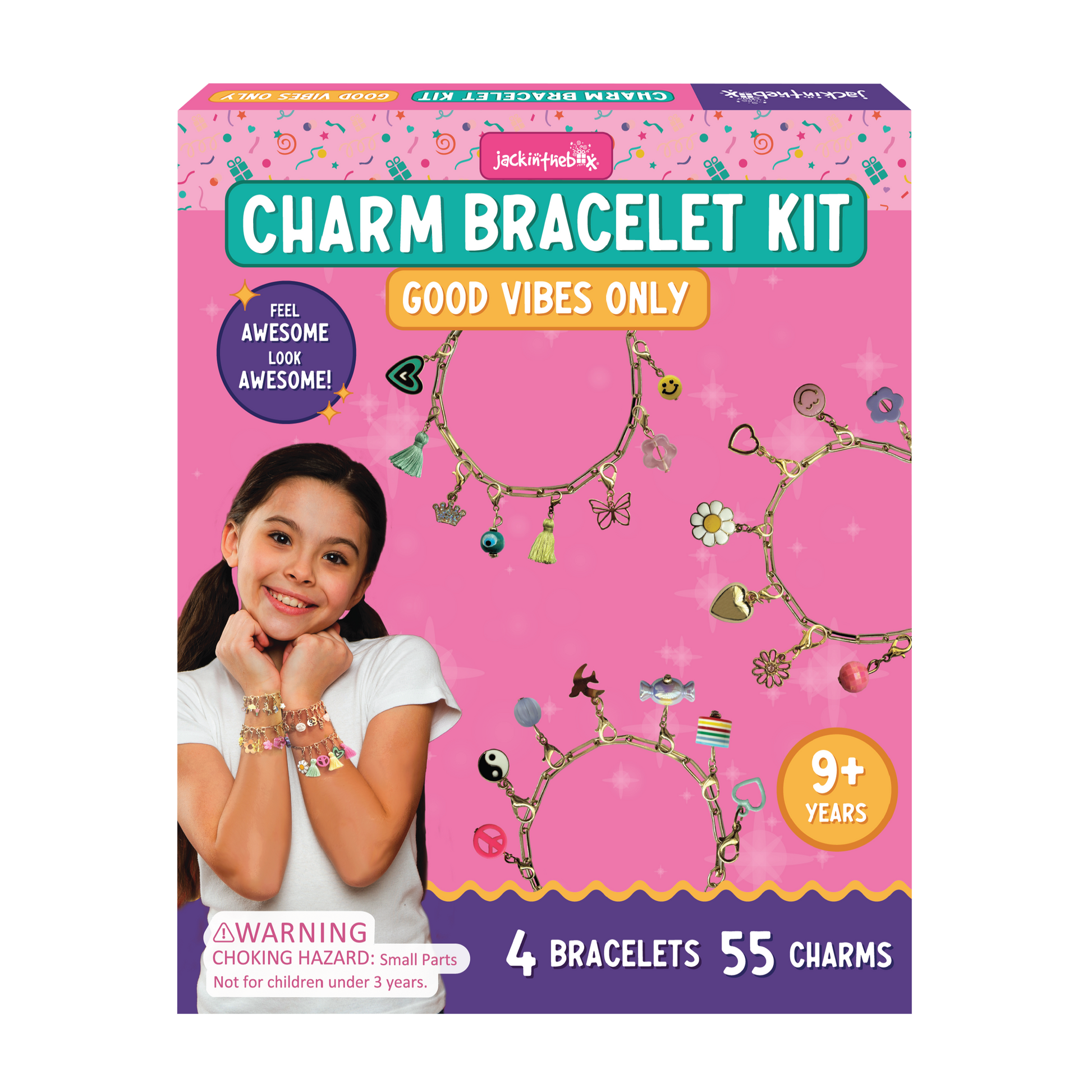 jackinthebox Girls Charm Bracelet Making kit | Includes 4 Bracelets & 55 Charms |Kids Jewelry Making kit for Girls 8-12 | Gifts for 8 9 10 11 12 Year Old Girls | Girl Toys 8-10 Years Old