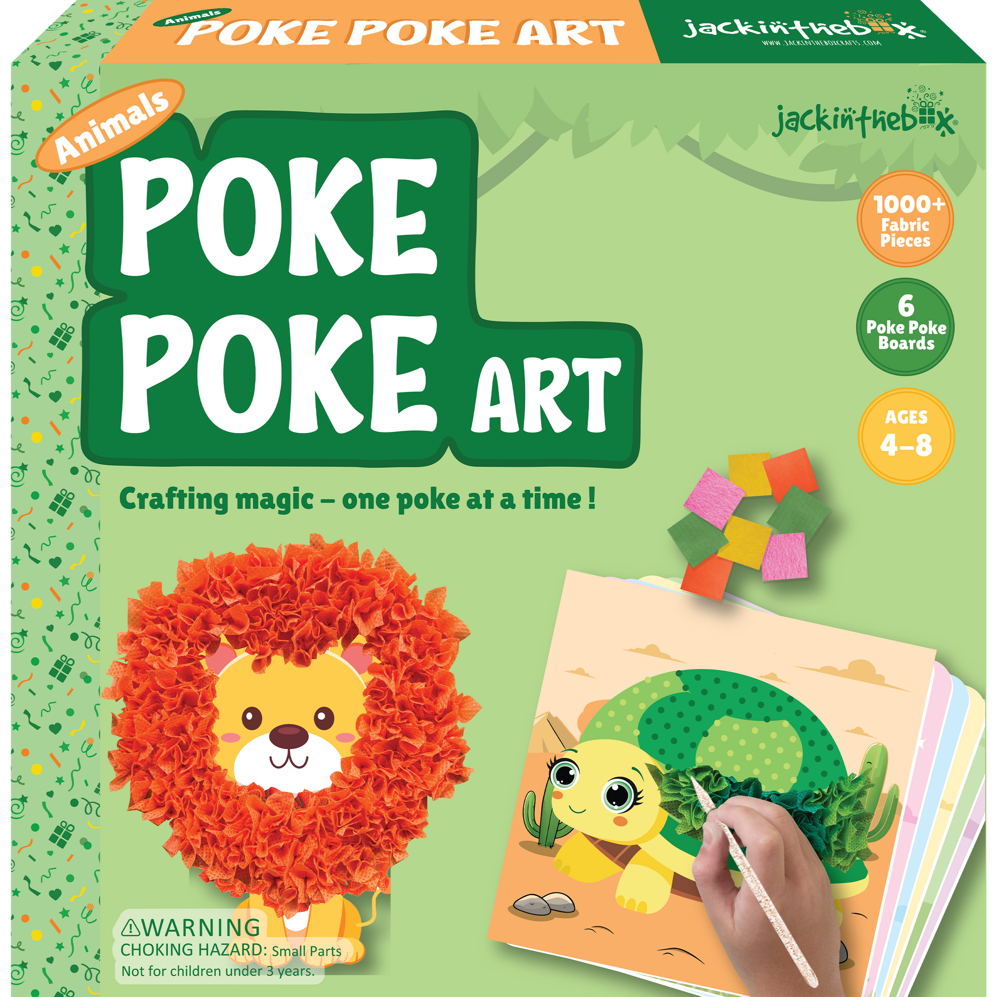 - POKE POKE ART KIT: Engage your child's creativity with this poke poke art activity! Kids can poke in and decorate animals like tortoise, snail, lion, owl, macaw, and butterfly using fabric squares and foam shapes without any mess—no glue, cutting, painting, or colouring required.