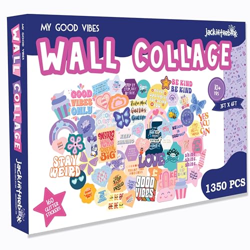 jackinthebox Wall Collage Kit with Glitter Crafts | 1350 PCS | Aesthetic Wall Decor for Teen & Tween Girls | Great for 11 12 13 14 15 Year Old Girls | Perfect Wall Prints | Cute Dorm Room Wall Décor…