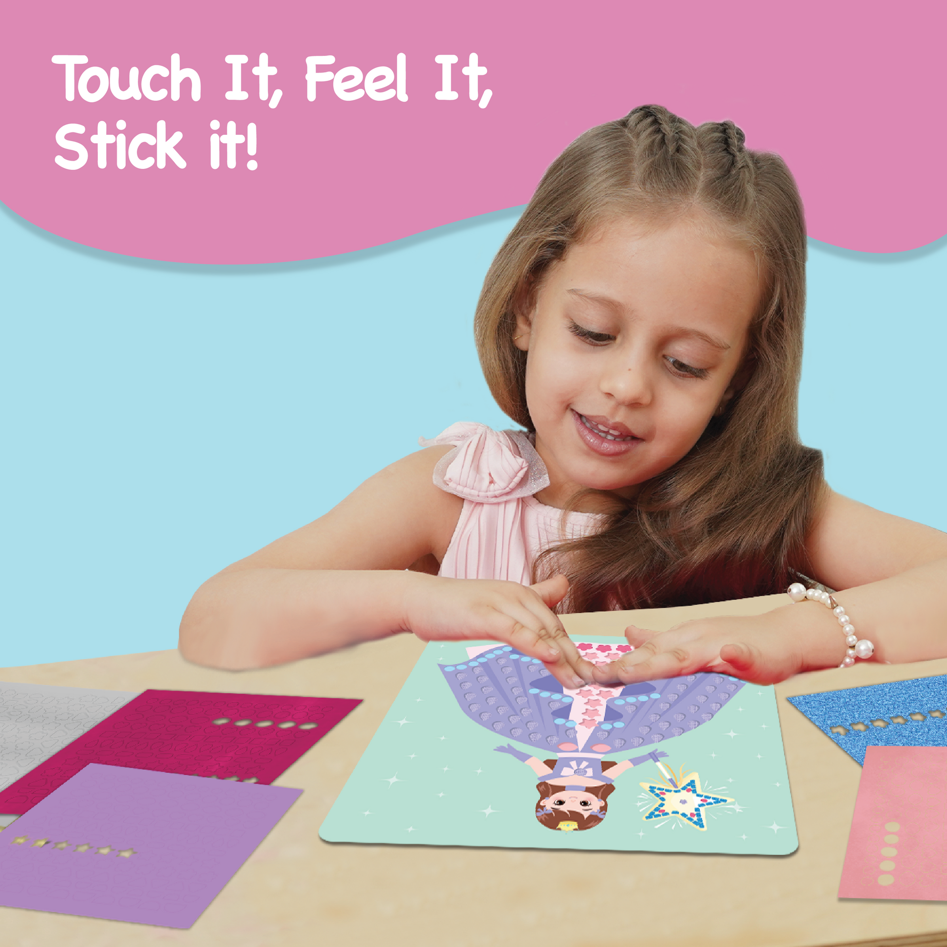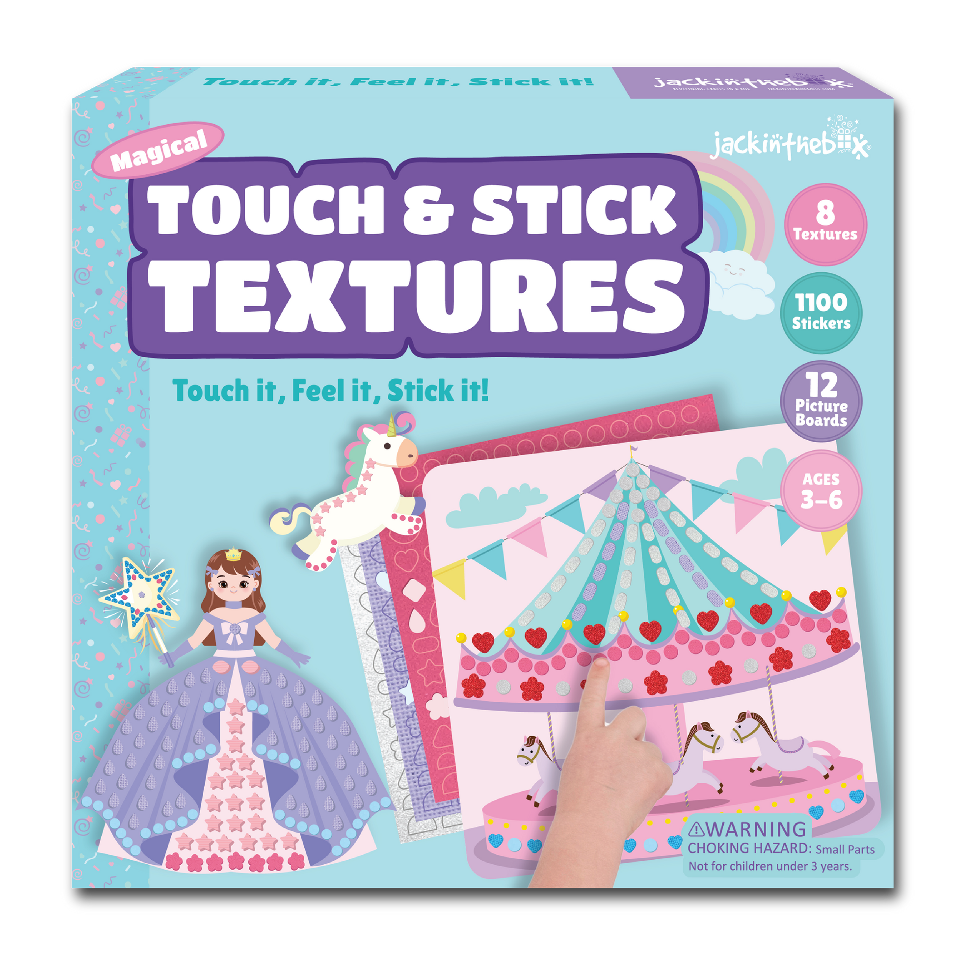 - TEXTURED STICKER CRAFT: Touch & Stick Textures is a mess-free, sticker activity kit crafted to introduce children to various textures while engaging them in independent creative play at home or on the move! With over 1200 textured stickers, your child will use their imagination and fine motor skills to embellish beautifully designed pictures!