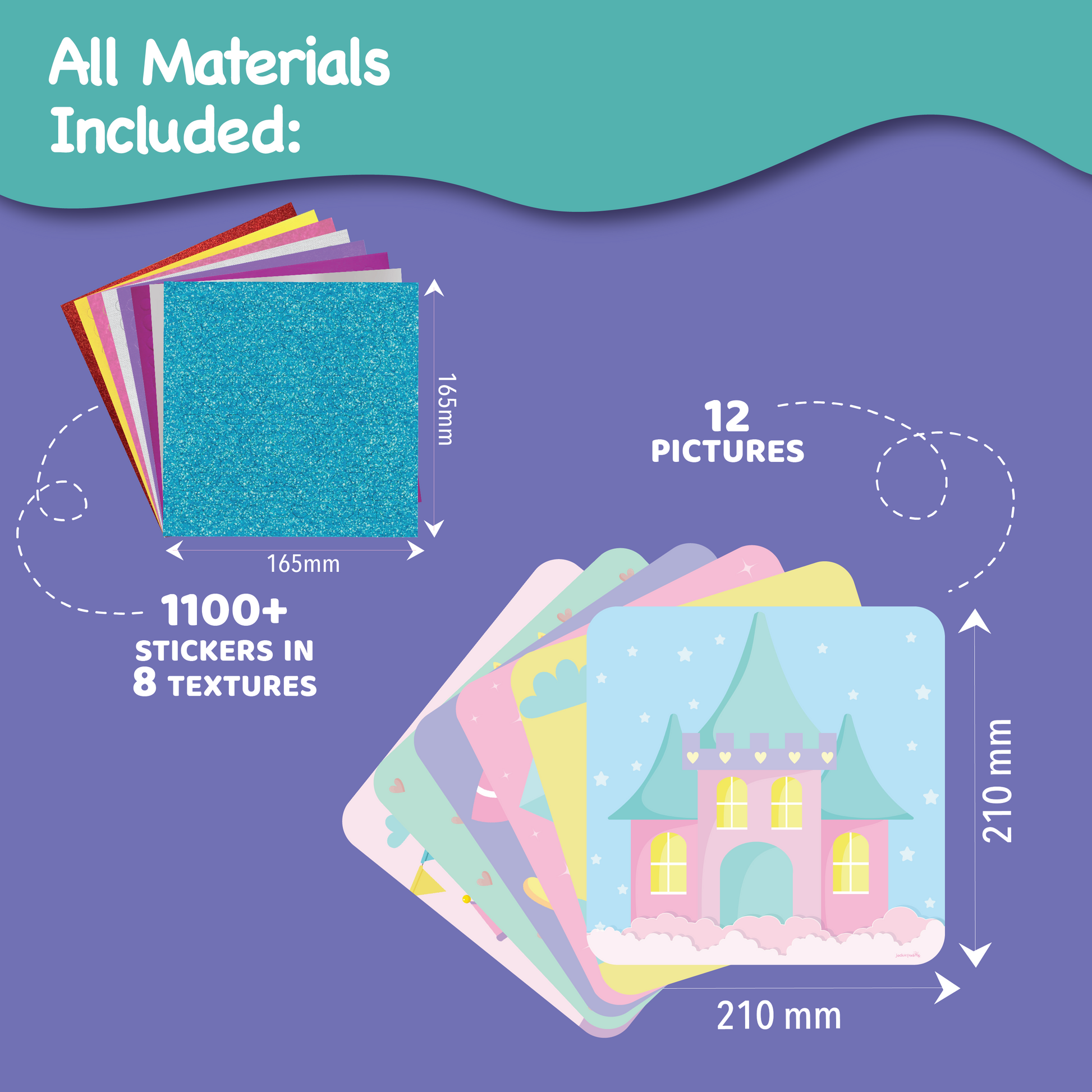 - WHAT'S INCLUDED: 1200+ Stickers in 8 different textures, 12 Pictures on 6 flip boards