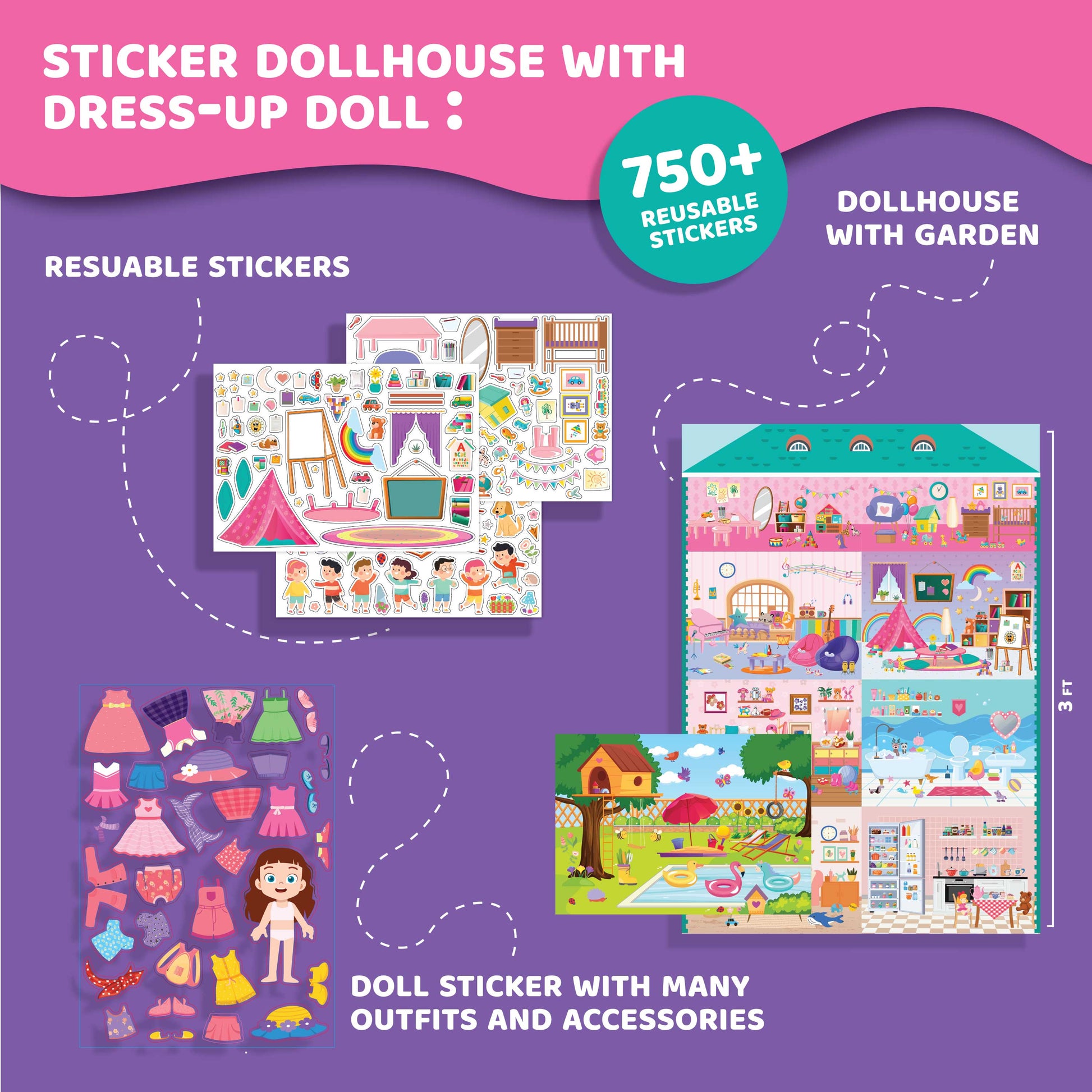 Sticker Dollhouse – Design Your Dream Doll House with 750+ Reusable Stickers, Interactive Pretend Play Set for Kids, Gifts for Girls Ages 3 4 5 6 7 8