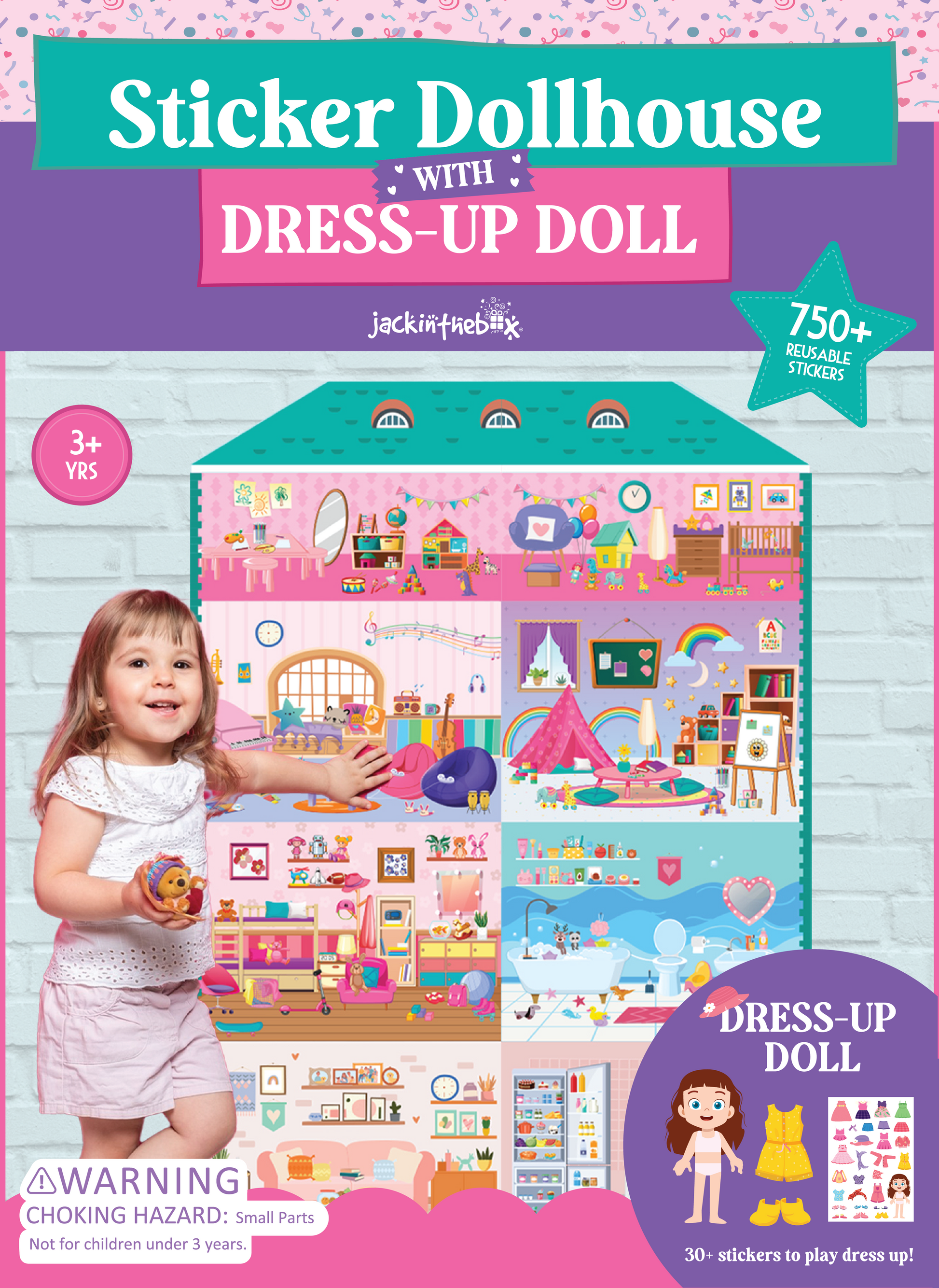- HIGH-QUALITY & COLORFUL GRAPHICS: JackInTheBox Sticker Dollhouse offers both high-quality reusable stickers for lasting play and fun, colorful graphics that engage young minds in the world of pretend play.